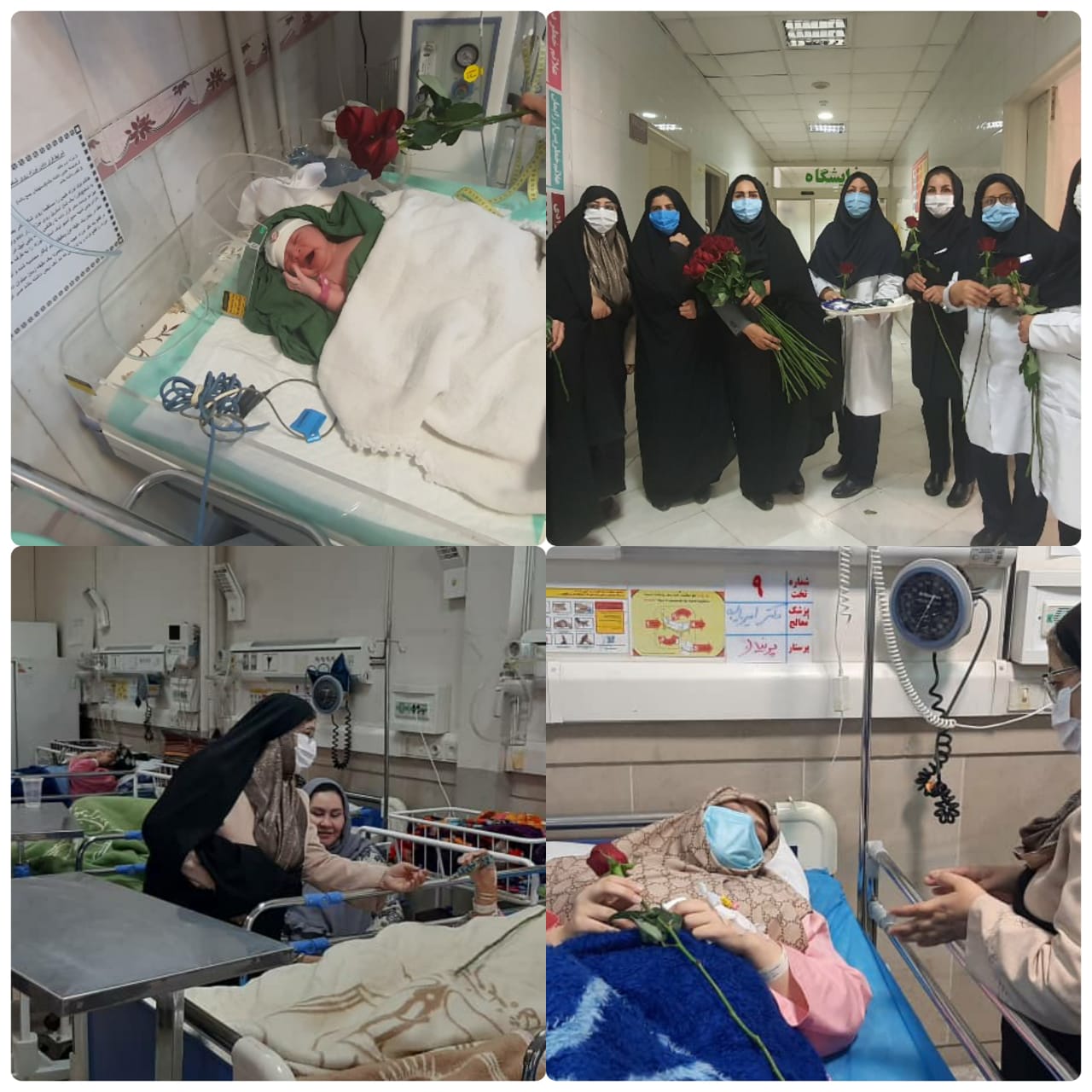 در راستای فعالیتهای صورت گرفته به مناسبت گرامیداشت روز زن و مقام مادر، با هماهنگی های انجام شده با بیمارستانهای قائم(عج) و امام رضا(ع) به صورت نمادین با حضور خانم دکتر نغمه رزاقی مشاور ریاست دانشگاه در امور بانوان به همراه شاخه گل و بسته های متبرک نبات آستان قدس رضوی از مادران تازه زایمان کرده بازدید به عمل آوردند و همچنین از پرسنل خانم بخشها با تقدیم شاخه گل تقدیر و تشکر شد .