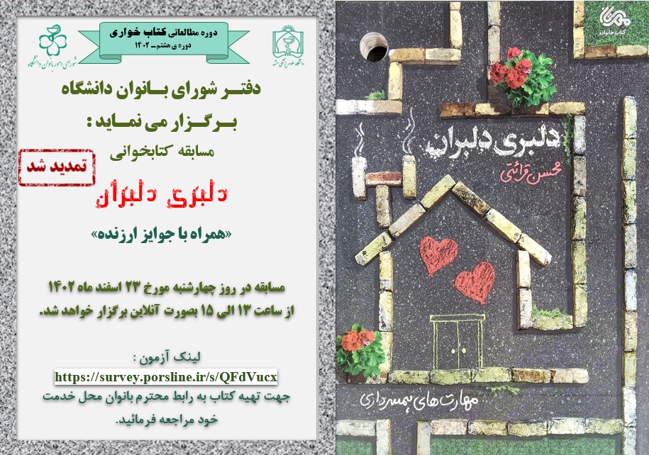 01 اسفند 1402 14 اسفند 1402 بازدید: 273 امتیاز: ( 0 Rating ) مسابقه کتابخوانی " دلبری دلبران " امتیاز کاربران لطفا رای دهید رای 1 رای 2 رای 3 رای 4 رای 5 لینک آزمون : https://survey.porsline.ir/s/QFdVucx قبلی بعدی