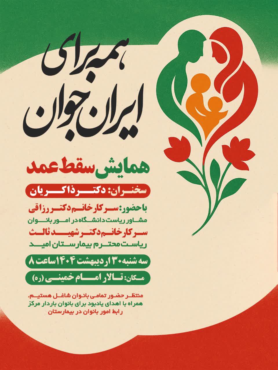 این همایش در راستای اجراییسازی ماده 56 قانون حمایت از خانواده و جوانی جمعیت مبنی بر "ممنوعیت سقط جنین " در بیمارستان امید مشهد برگزار شد.