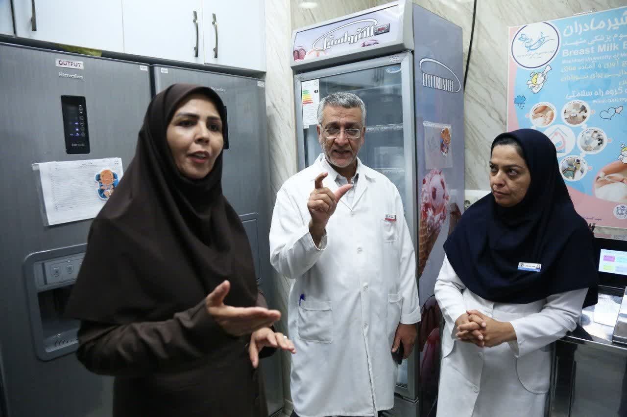 خانم شاعرمقدم مسئول بخش "بانک شیر مادران" ضمن تشریح خدمات این بخش ، خدمات این بخش را در شرق کشور بی نظیر و اعلام نمود مشابه آن در حال حاضر فقط در شهرستان نیشابور وجود دارد. طی خدمات ارایه شده در این بخش، مادرانی که شیر مازاد بر مصرف فرزند شیرخوار خود دارند، آدرس و زمان مراجعه را اعلاممی نمایند و از طریق پیک اعزامی از طرف بیمارستان به سطح شهر شیرهای مازاد مادران جمع اوری و در بخش nicu به مصرف نوزادان نارس می رسد.